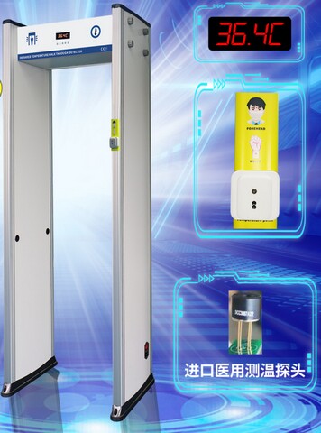 非接觸式人體測溫安檢門,集測溫與金屬檢測于一體,通過金屬安檢門時,先進 行紅外人體測溫,篩查發(fā)熱目標,并聲音報警; 適用于人流集中的地鐵,車站,學(xué)校,工廠單位門口等高頻率進出場所