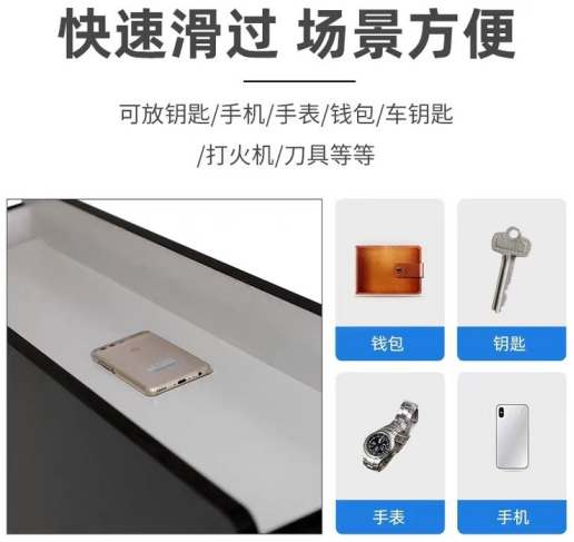 特點(diǎn):針對(duì)允許帶入的白名單物品(對(duì)講機(jī)、警用裝備等),使用過(guò)程:檢測(cè)物品可通過(guò)放置傳送,被測(cè)人員通過(guò)手機(jī)檢測(cè)門(mén)后即可取回。