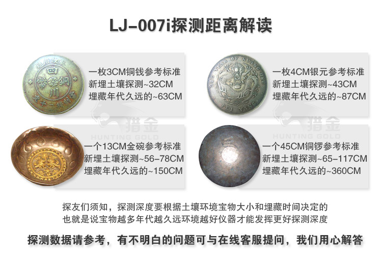 LJ-007i是一款高性能,智能的金屬探測器地下尋寶器,它集合了在電子儀器最新的技術,它的功能設計代表了金屬探測器技術的最前沿。LJ-007i更容易去學習使用,它組裝相對簡單、操作更加的簡單便捷。它的重量輕相比傳統的儀器更加出色。它非常出名于用在黃金、銀元、銅幣等古物探測上。獨有磁場調節功能在不同雜亂的環境下自動排除不掉的磁場可手動濾除,大大提高儀器的穩定靈敏性。